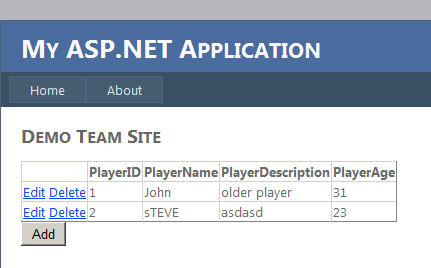 db.players.Add(new Player { PlayerName = PlayerName, PlayerDescription = PlayerDescription, PlayerAge = PlayerAge });